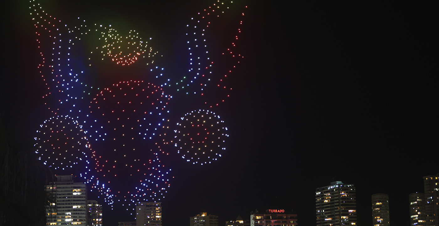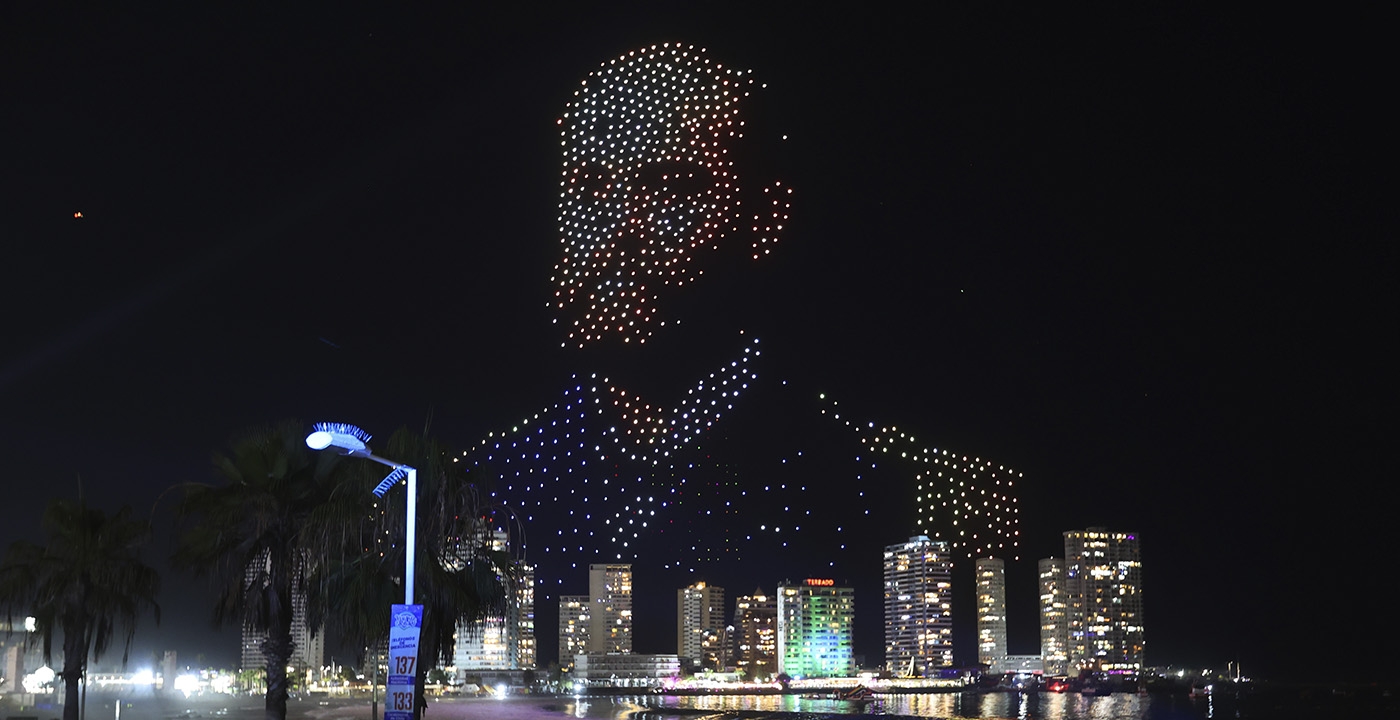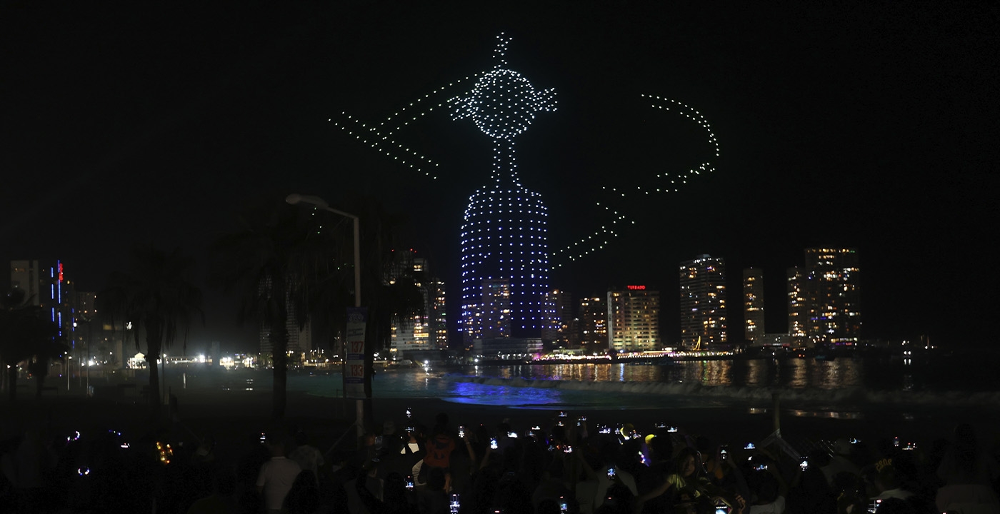 Minutos antes de la medianoche, mil drones comenzaron a elevarse desde la orilla de la playa, anunciando la cuenta regresiva hacia el 2025. Con perfecta sincronía y acompañados de música, los dispositivos llenaron el cielo de luces y formas que dejaron sin aliento a los espectadores.