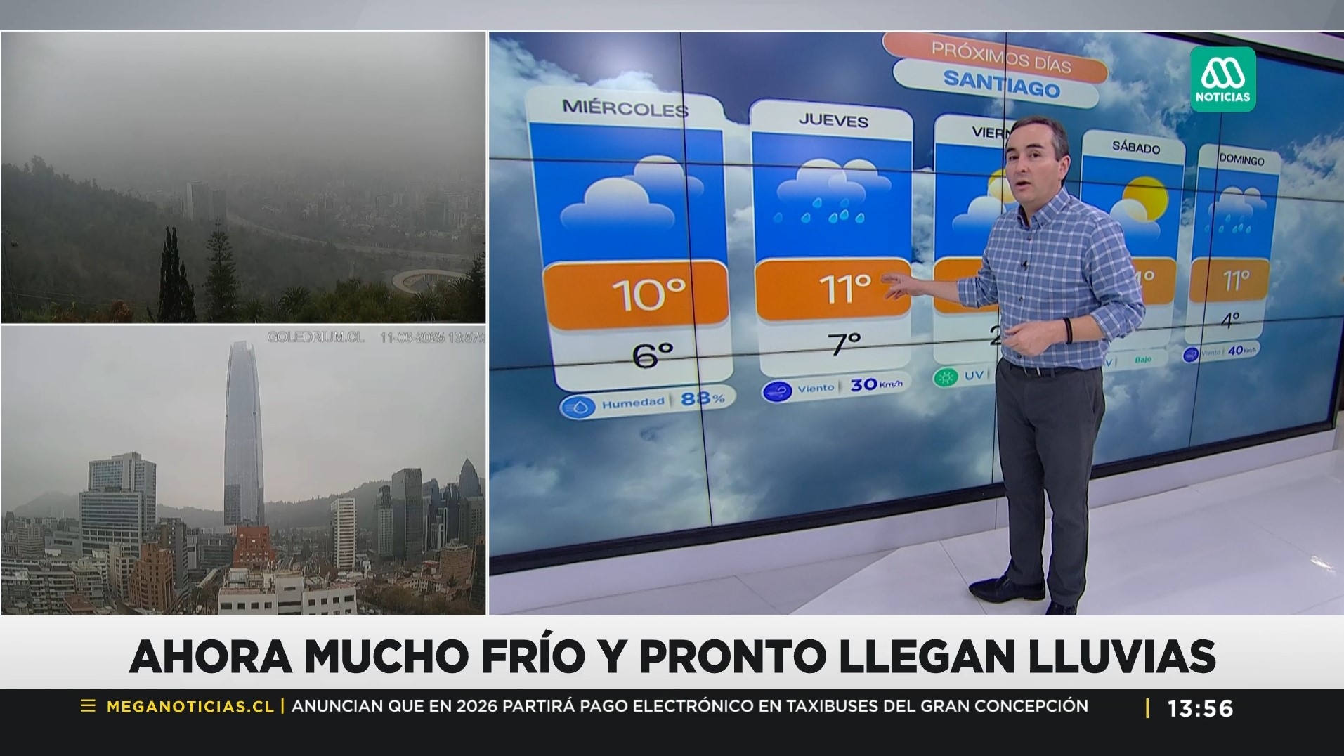 En el noticiero, Sepúlveda indicó que en la Región Metropolitana las precipitaciones comenzarán "pasadita la medianoche. Ahora, en el Gran Santiago, será tipo 4 de la madrugada (del jueves)".