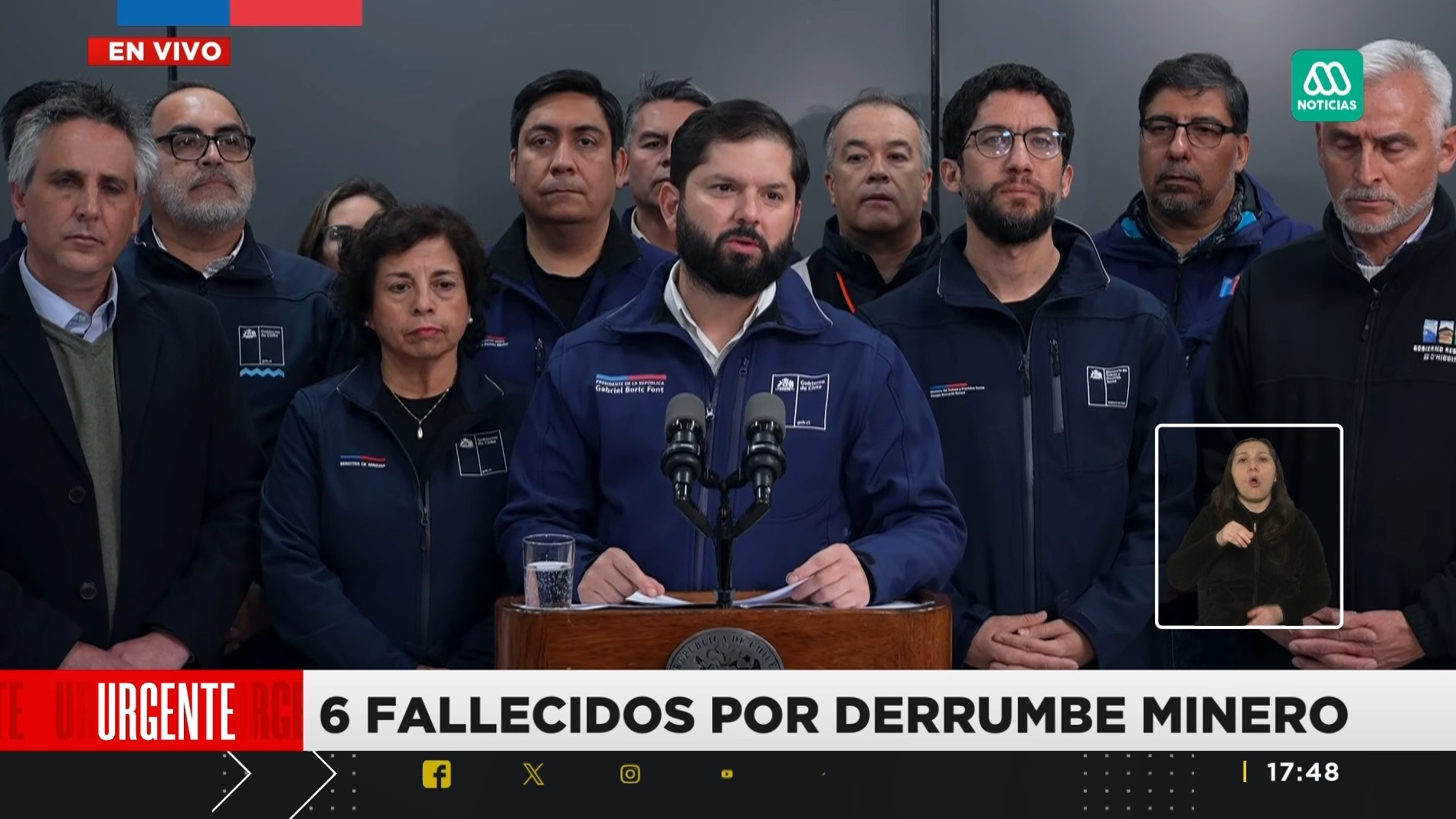 La tarde de este domingo, el Presidente Gabriel Boric decretó tres días de duelo nacional luego de la tragedia ocurrida en la mina El Teniente, en donde seis trabajadores murieron tras un derrumbe en el yacimiento Andesita.