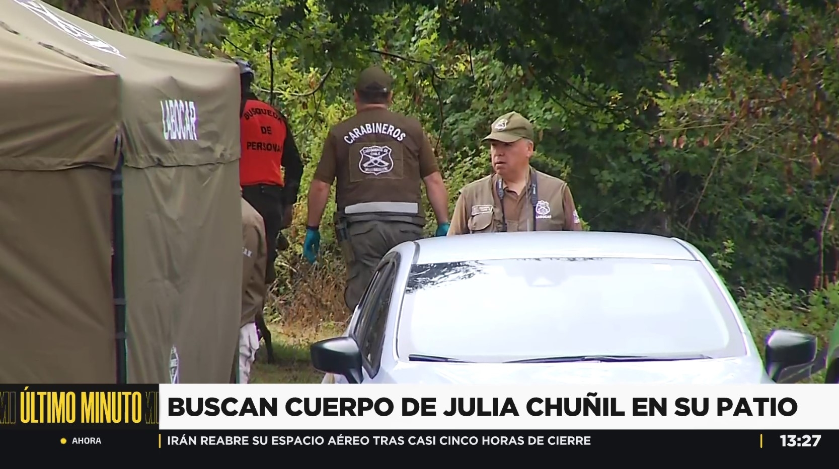 Así, la institución policial comenzó con un intenso despliegue en la casa donde vivía Julia Chuñil. Se trata de cerca de 80 funcionarios que llevan a cabo una "operación rastrillo" en un punto trasero del terreno.