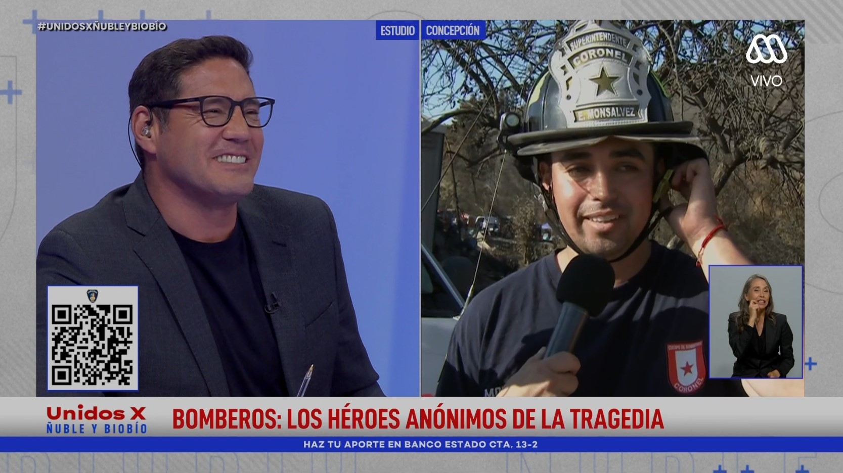 Desde Concepción, Eduardo Monsálvez, superintendente de Bomberos de Coronel, voluntario que protagonizó el heroico rescate de dos mellizas de los siniestros que azotaron a Penco, se refirió al estado de las pequeñas y Martín, niño de 10 años que logró escapar de las llamas junto a su madre.
