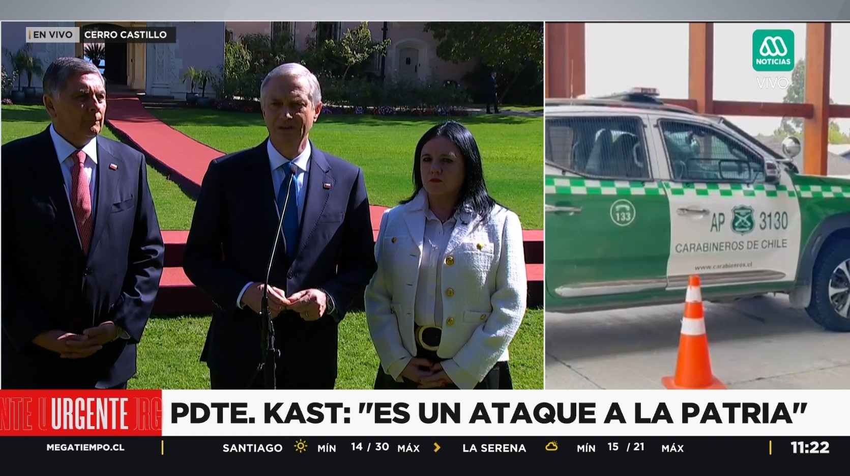 "Esto va a cambiar, porque los vamos a perseguir, los vamos a encontrar, los vamos a juzgar y les vamos a aplicar todo el peso de la ley, y en eso que nadie se equivoque, con todo el carácter que corresponda a un gobierno, a un Estado de derecho", complementó Kast.