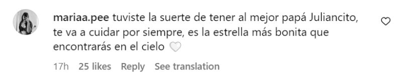 La publicación del post conmovió a los fans y seguidores de Julián Figueroa. "Seguirá siendo un buen padre, te va a seguir cuidando desde el cielo, muñeco"; "Un papi nunca se irá. No los podemos ver pero siempre lo podrás sentir. Aquí estamos toda tu familia para ti siempre"; Tuviste la suerte de tener al mejor papá, Juliancito te va a cuidar por siempre, es la estrella más bonita que encontrarás en el cielo”, fueron parte de las reacciones de los internautas.