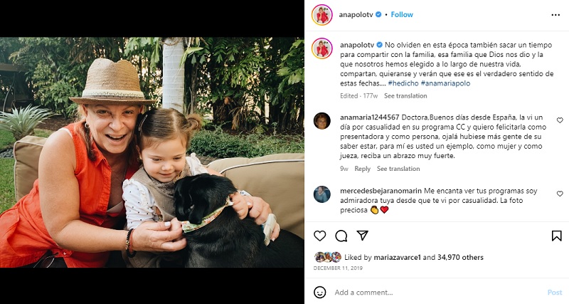 Actualmente, la doctora Polo disfruta de un merecido retiro de las pantallas, pero sigue conectada al público a través de las redes sociales, donde tiene 2,7 millones de fans en Instagram y recientemente logró alcanzar los 15 millones de seguidores en su página en Facebook.