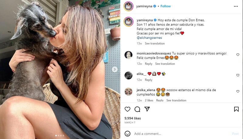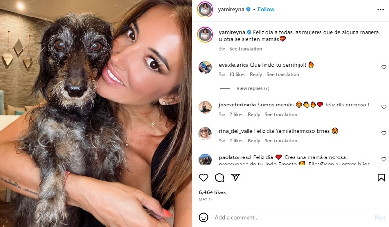 “¡Qué lindo tu perrihijo!”; “Eres una mamá amorosa, preocupada de tu lindo Ernesto. Ellos son nuestros hijos”; “Pues todavía estás a tiempo de tener bellos hijos, y te quedarían hermosos”, se lee entre los comentarios.