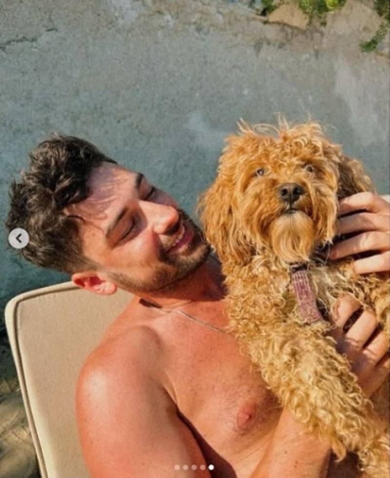 Por su parte, la nueva novia de Alp publicó en un carrusel de Instagram una foto del actor con su mascota.