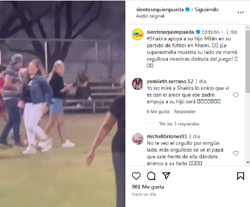 En un video publicado en la cuenta de Instagram de un programa de farándula, se ve a la cantante sentada en las gradas con teléfono en mano, mientras su hijo mayor está en calentamiento.