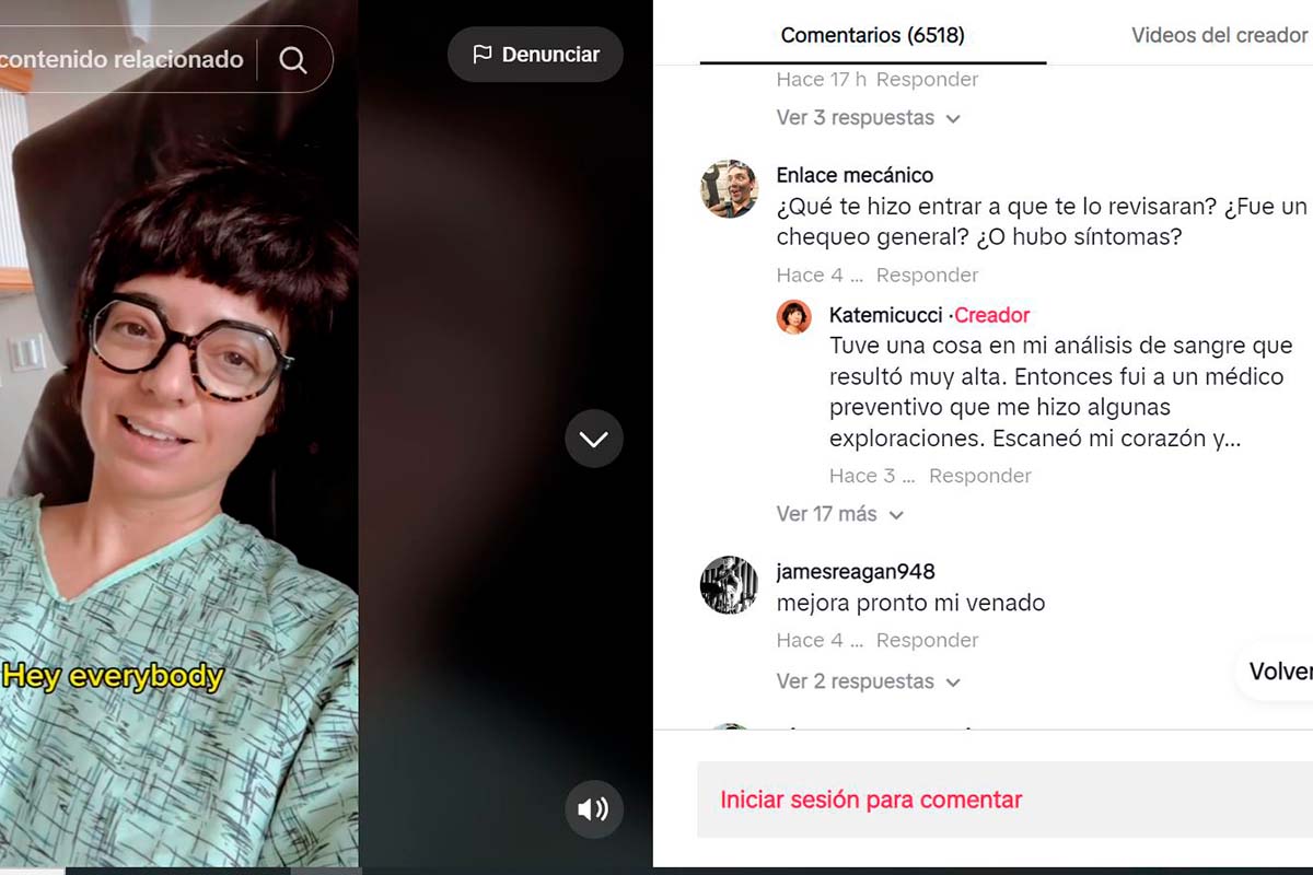 "Hola a todos, esto no es un TikTok, es un 'Sick Tok'", señaló Kate, con un juego de palabras (sick significa enfermedad). “Estoy en el hospital porque ayer me operaron de cáncer de pulmón. Lo detectaron muy temprano”, comienzó a relatar la comediante.