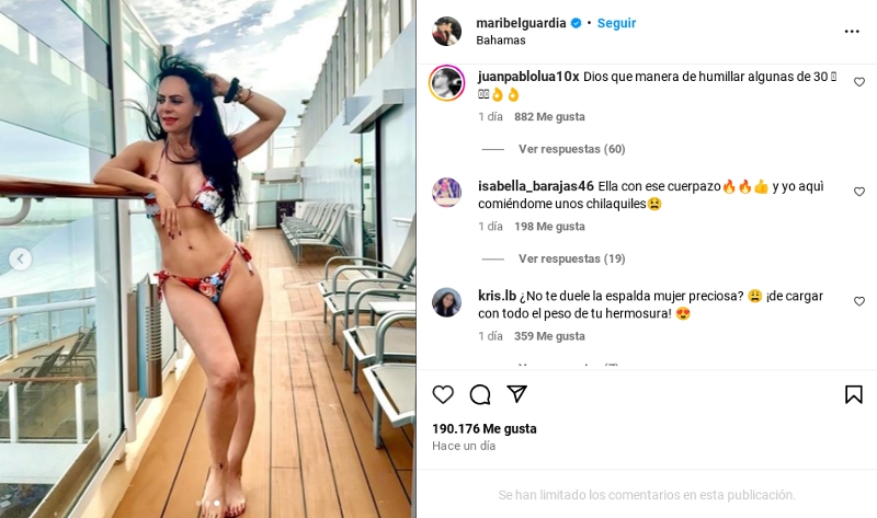Sonriente, con su larga cabellera negra suelta, Maribel no dejó indiferentes a sus seguidores, quienes no pararon de comentar su increíble figura.