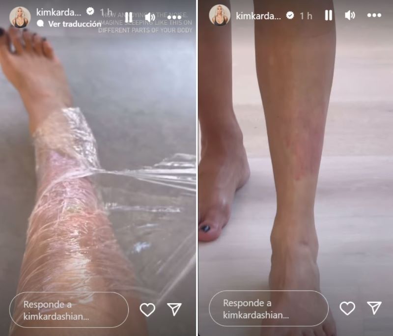 Pasadas algunas horas, mostró los efectos del tratamiento que comienza a aplicarse. Envolvió su pierna con papel film después de colocarse una crema durante toda la noche.