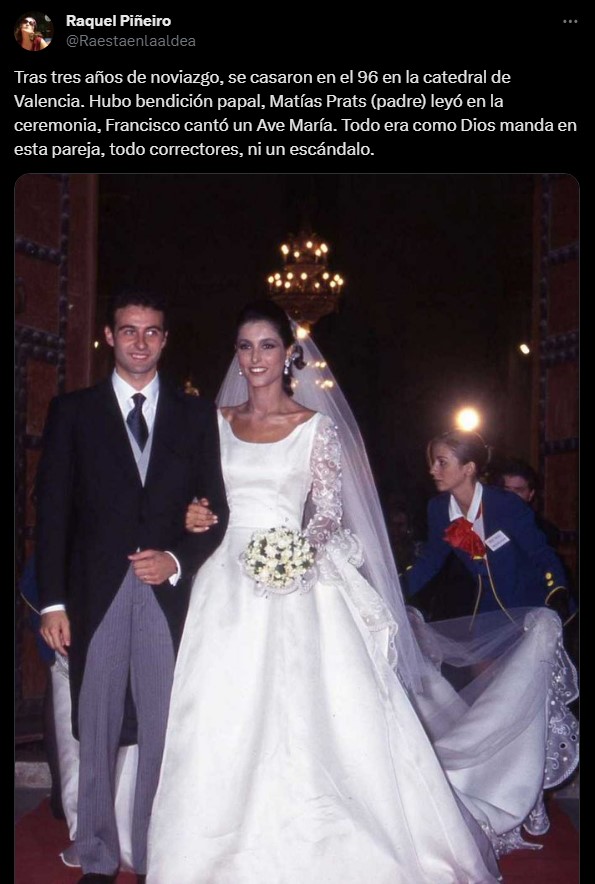 Considerada la boda del año en Valencia, España, en 1996, la pareja del momento conformada por el torero Enrique Ponce y su prometida, la hoy diseñadora de moda andaluza e hija de uno de los mejores diestros, protagonizó un majestuoso festín en el que se dio cita la alta sociedad valenciana.