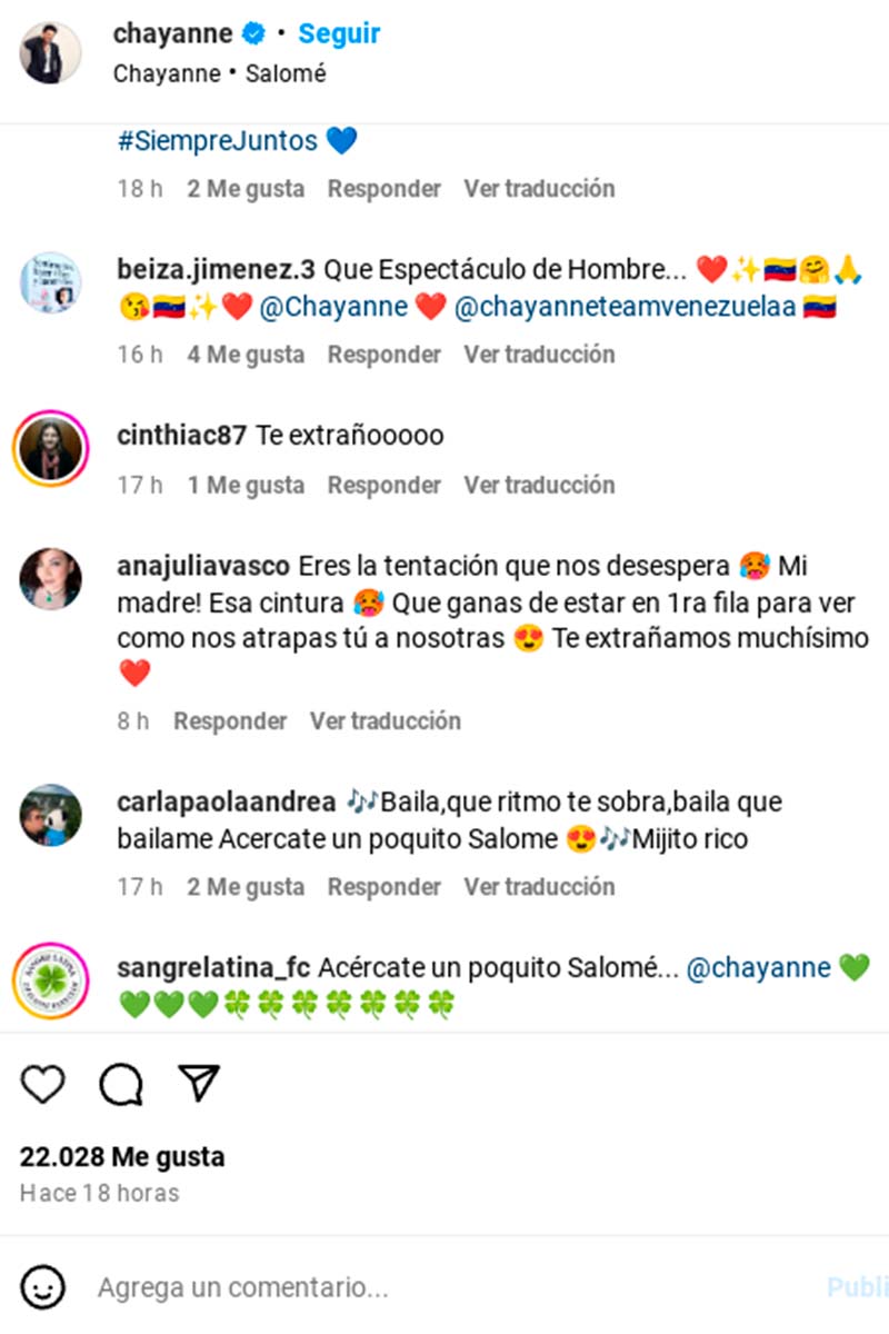 Otras seguidoras escribieron: “¡Que espectáculo de hombre!”, "Baila que el ritmo te sobra, baila que baila me acercaré un poquito Salomé", “Bellísimo” y un “Te amo”.