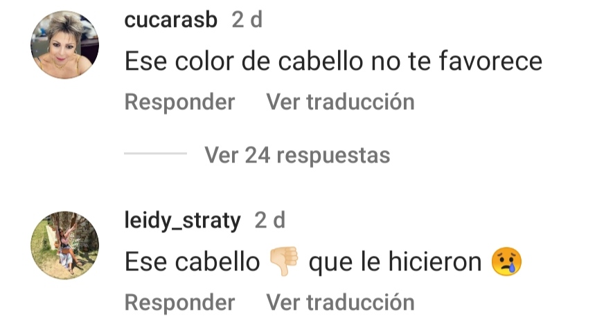 Mientras que los haters de Instagram dejaron comentarios duros. “Ese color de cabello no te favorece”; “Desde que Luis Fonsi te dejó estás con puras payasadas”; “Pobre viejita, ya no sabe qué hacer por plata”; “Eres linda, pero me parece que mejor te queda el tono de cabello más oscuro”; “Qué horror su color de cabello”; “¿Qué le pasó en su cabello? Lo tenía mejor antes”.
