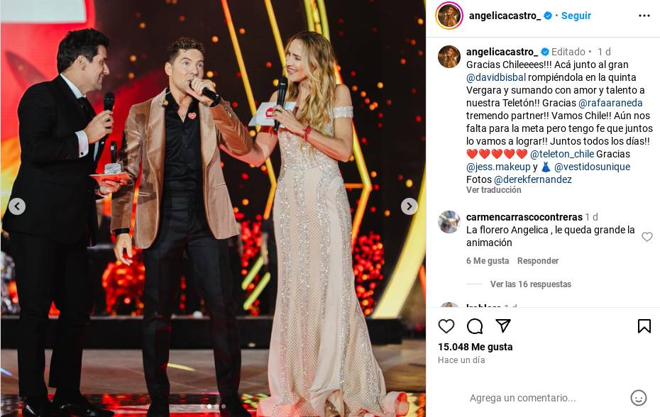 “Eres una mujer tan transparente y sencilla”, “La mejor comunicadora, sobria, elegante y hermosa Angélica”, "Elegante, radiante, hermosa con ese vestido”, “Angélica, como siempre tan única, ayer te luciste con tu elegancia, tu perfecto estilo como comunicadora”, se lee entre los comentarios de un post de Castro en Instagram, con imágenes de la presentación.