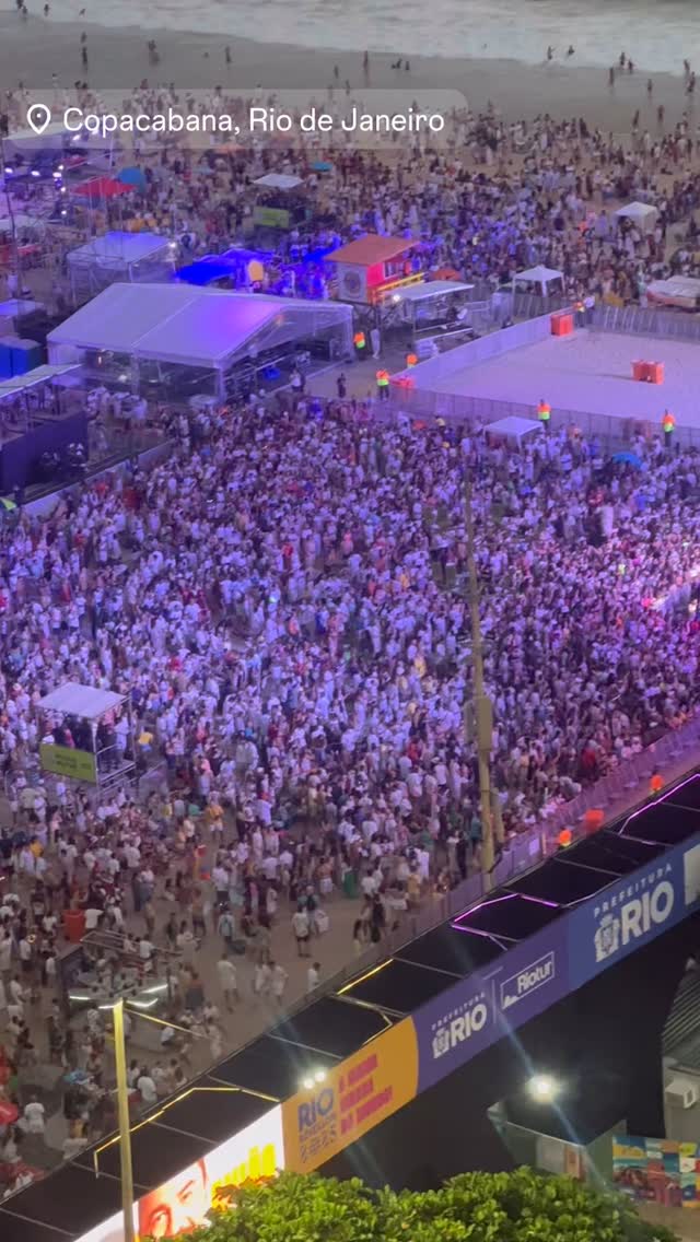 "Hola, ¿cómo están? Muy buenos días. Son las 07:08 AM, estamos en Río de Janeiro, playa de Copacabana (...) y ya hay gente reservando sus lugares, como ustedes pueden ver con sus quitasoles y mochilas. Se pueden imaginar cómo va a ser esto. (...) Va a ser una cosa impresionante", comentó a través de un video en stories.