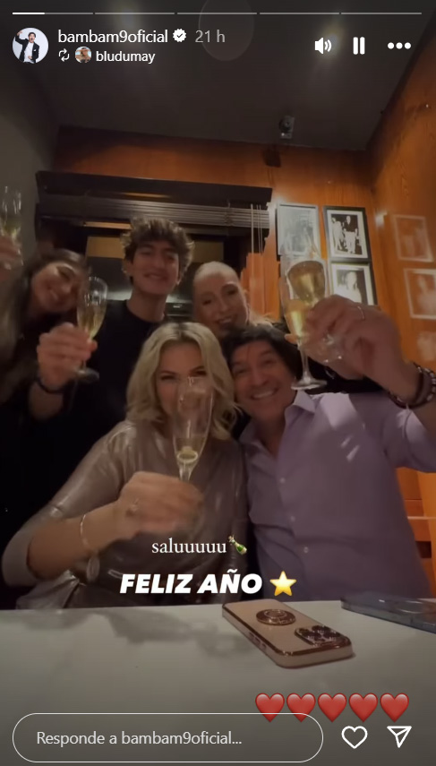 La fiesta comenzó con el cumpleaños de Pablo Galdames, pues el centrocampista del Vasco da Gama cumplió 28 el pasado lunes y "Bam Bam", su esposa e hijos, Mía Pascale e Iván Jr., que viven con ellos, y Blu Dumay (que los visitó desde EEUU), participaron de la celebración para esperar el 2025.