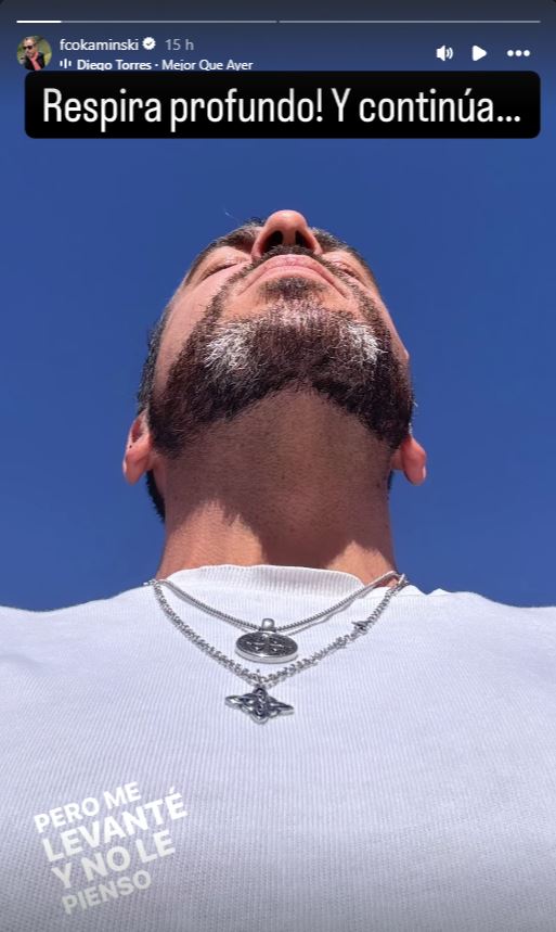 Según se vio en sus historias de Instagram, el comunicador se fotografió mirando hacia el cielo, junto a una enigmática frase y una canción de Diego Torres llamada "Mejor que ayer": "Respira profundo y continúa".