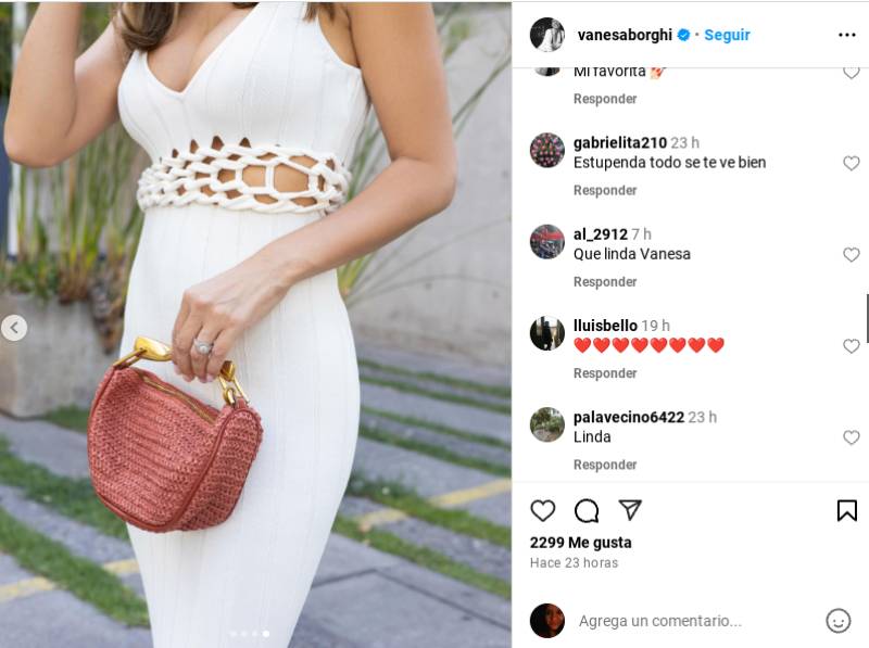 Borghi seleccionó un par de zapatos destalonados, con tacón cuadrado, en un delicado tono nude que acentuó el estilo veraniego del outfit. Los seguidores de la presentadora no tardaron en halagar su elección. "Es que el blanco es tu color, querida Vane. Te ilumina y te levanta todo”; “precioso vestido, pero lo que te pones se ve elegante y fabuloso”, comentaron.