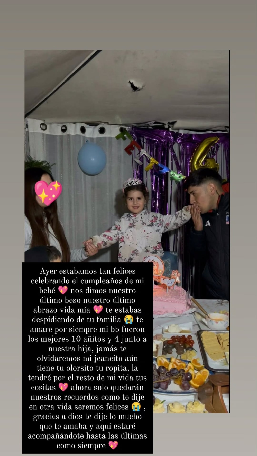 Hermosilla no compartió información sobre la causa de muerte de Jeampy. Hasta ahora, solo se sabe que horas antes había celebrado el cumpleaños de su hija, como se ve en las últimas fotos que publicó su pareja. "Nos dimos nuestro último beso, nuestro útimo abrazo. Te estabas despidiendo, vida mía", escribió Patricia.