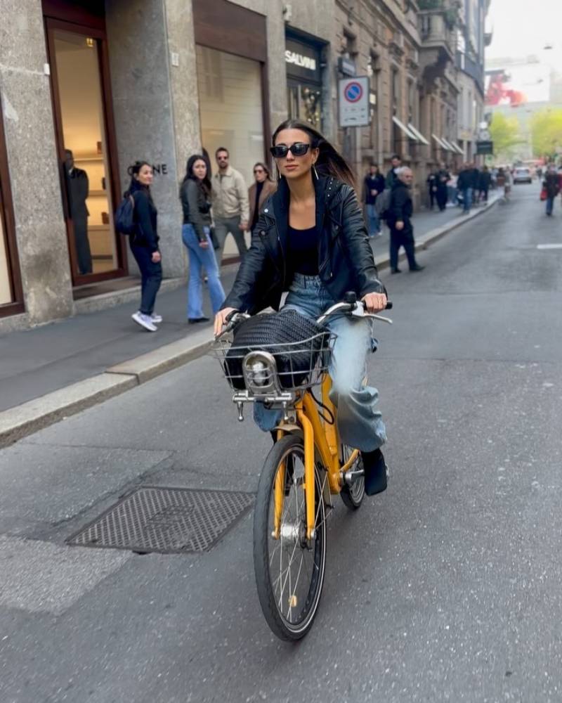 Los tacos altos no limitan a Tita Ureta: Recorre Milán en bicicleta con un glamuroso outfit
