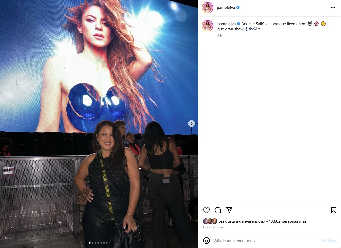 Otra de las famosas que también dijo presente en los show de Shakira fue Pamela Leiva, quien fue el pasado lunes 7 de abril.