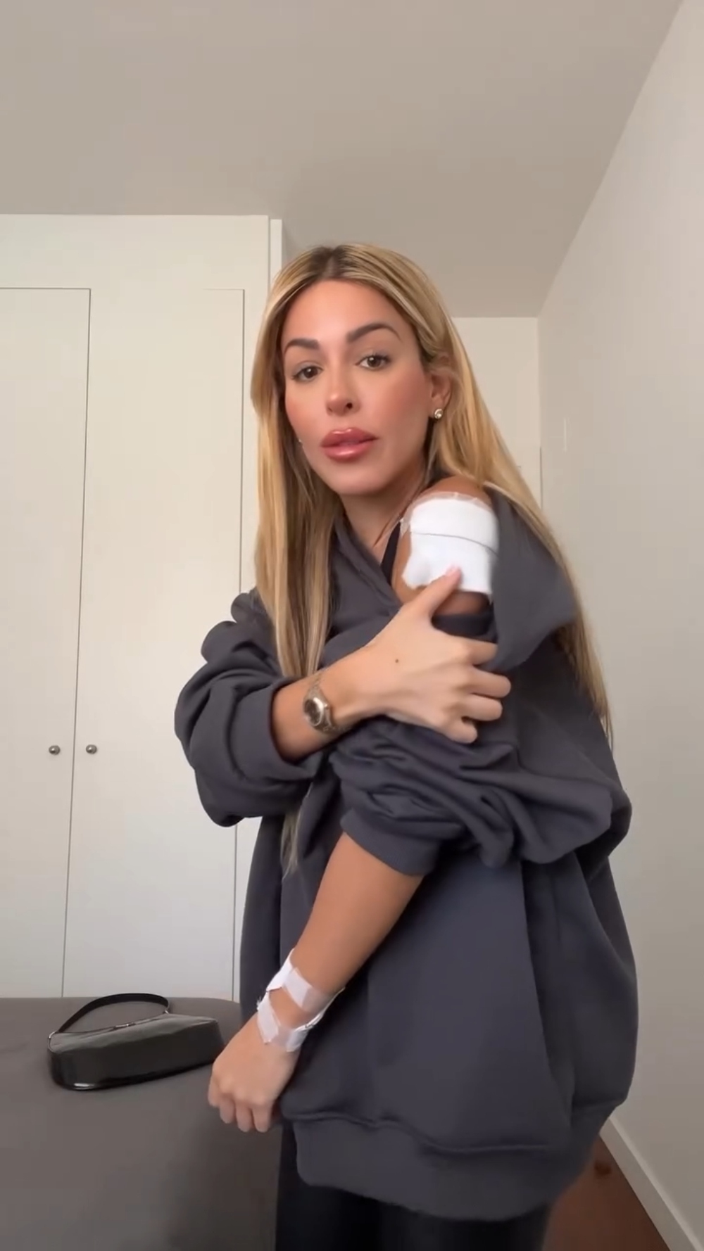 En sus historias de Instagram, la modelo publicó un video en el que aparece con vendas luego de la sesión. “Acabo de salir de hacerme el láser para quitarme este tatuaje (el de la muñeca), que era atroz, no sé en qué momento decidí hacerme uno que dijese 'rock and roll'", relató inicialmente.