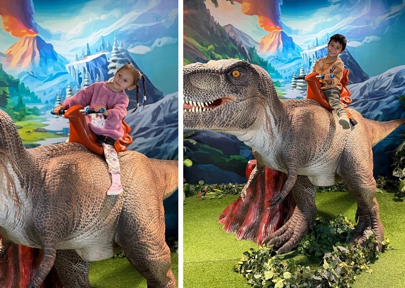 Noah y Leiah, los hijos de Lisandra Silva, vivieron una nueva y divertida experiencia en un parque temático de dinosaurios, al que acudieron acompañados por su madre, quien también la pasó genial.