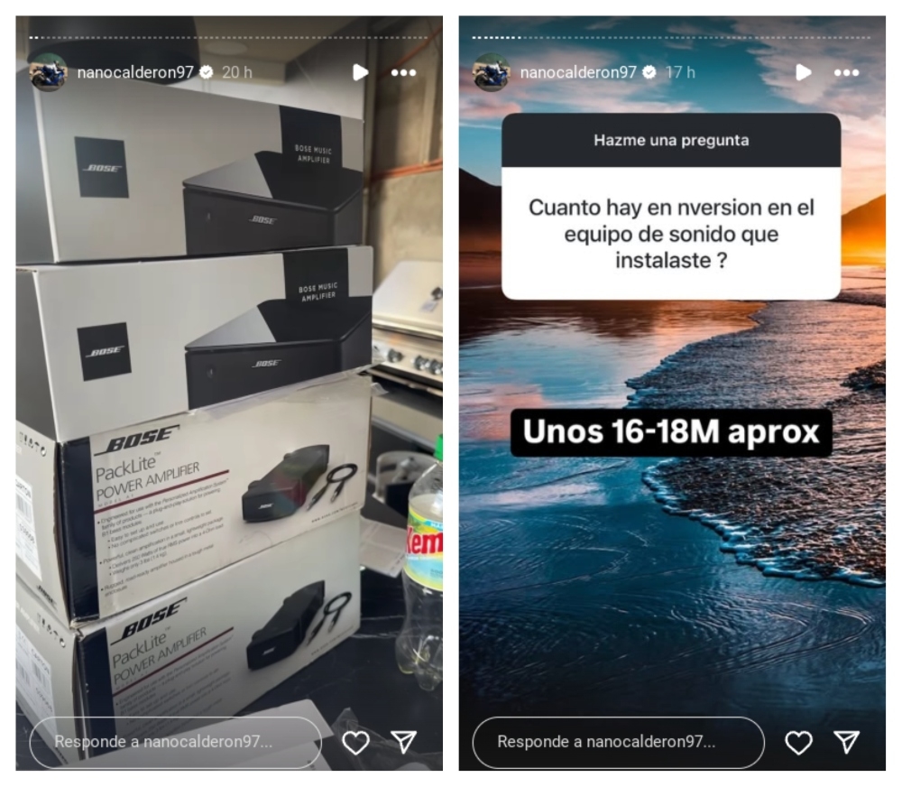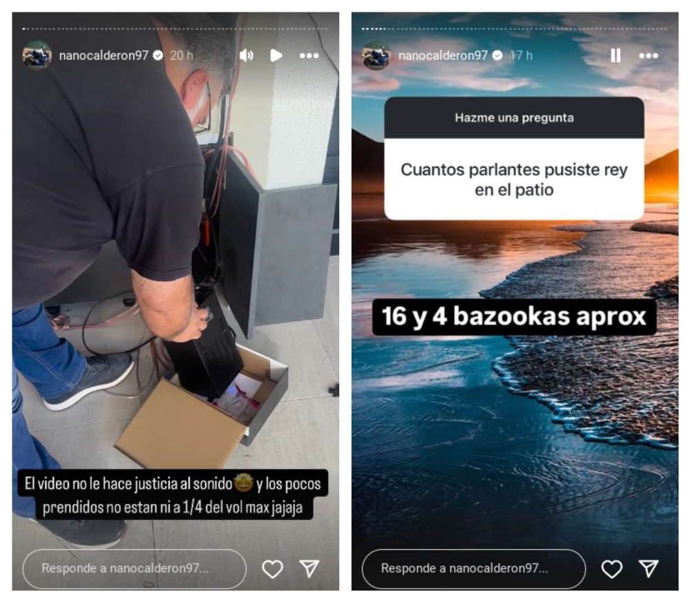 Nano Calderón compartió en sus historias de Instagram registros del momento cuando los técnicos instalaron las 16 bocinas y 4 bazookas de audio en el área, algunas de ellas en el techo. Además, respondió a sus seguidores preguntas sobre el valor del sistema de sonido.