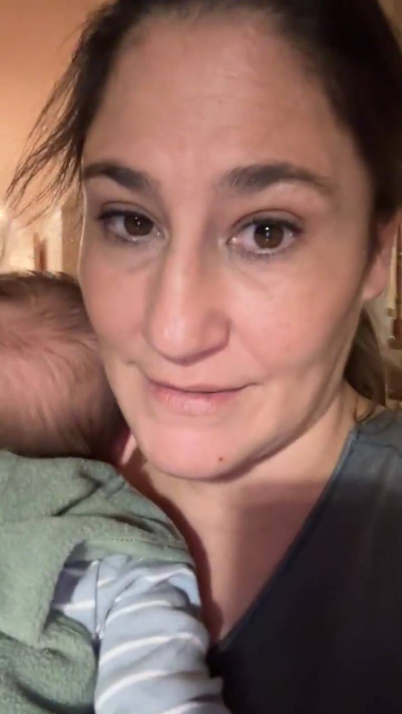 “Este es un look que estoy estrenando. Hartas ojeras, espinillas extrañas, la mirada un poco disociada por la privación de sueño. El pelo así (desarreglado), no me he duchado”, explicó mientras mostraba al bebé con cariño.