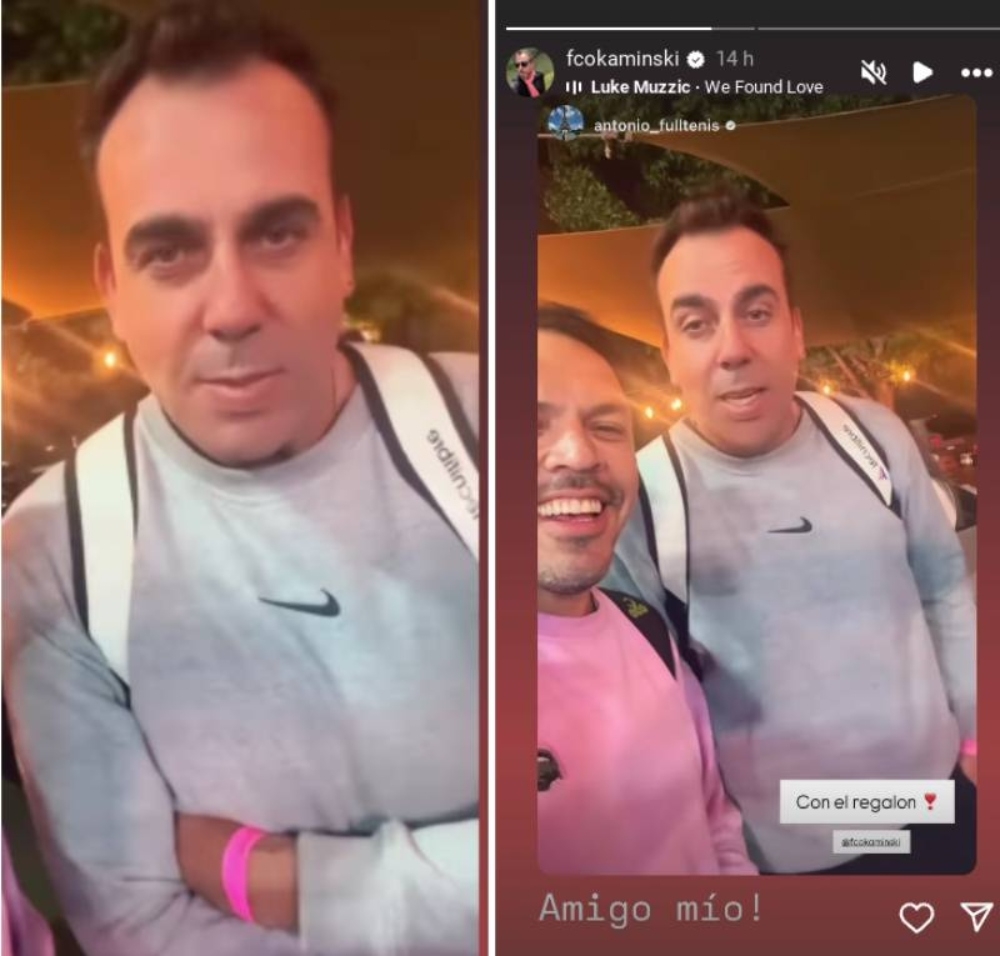 En sus historias de Instagram, el también empresario publicó un video junto a su amigo Antonio Carreñovic en un evento deportivo, donde dejó ver su rostro sin su habitual barba.