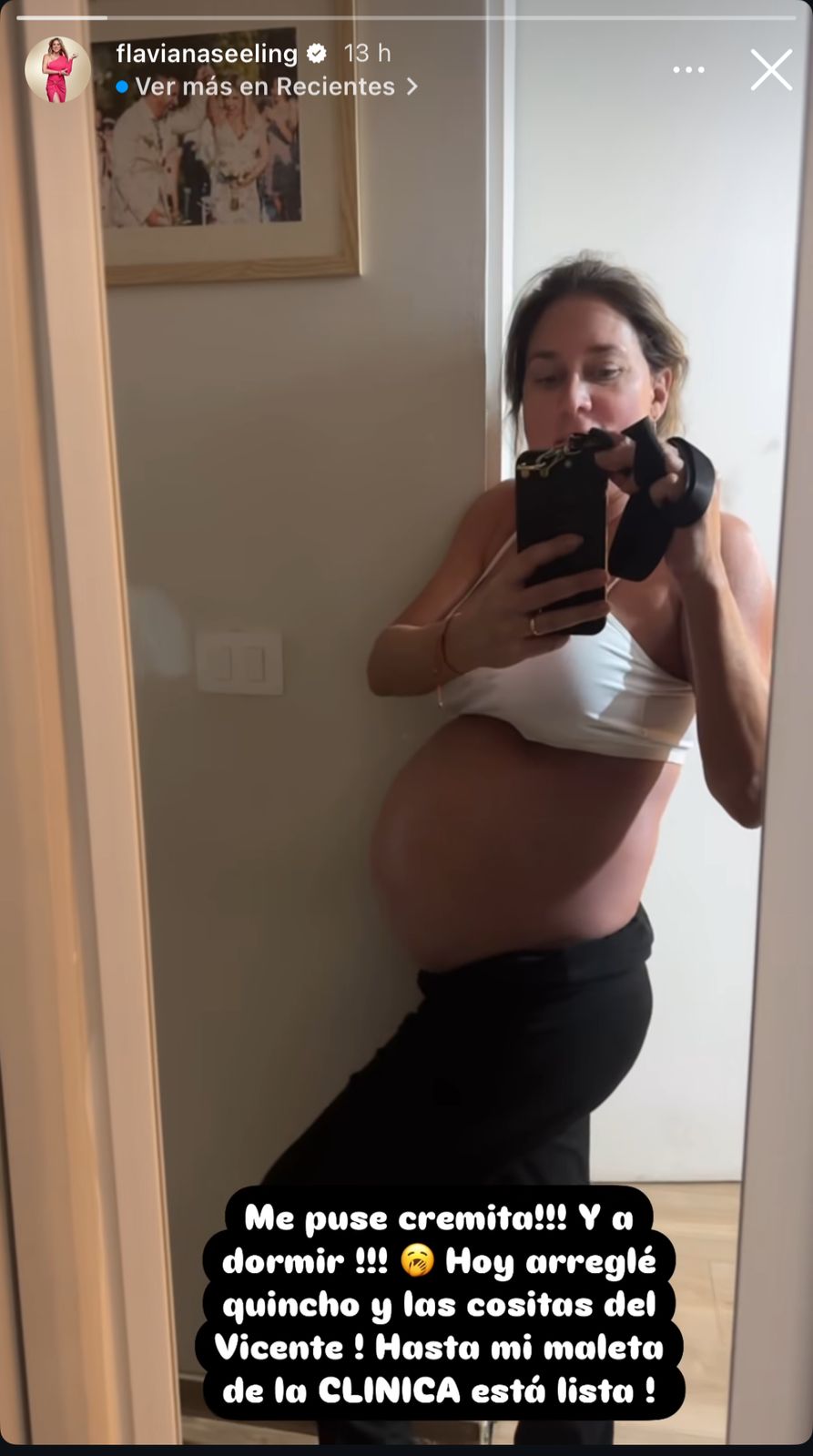 "Me puse cremita y a dormir. Hoy arreglé el quincho y las cositas de Vicente, hasta mi maleta de la clínica está lista", escribió Flaviana Seeling.