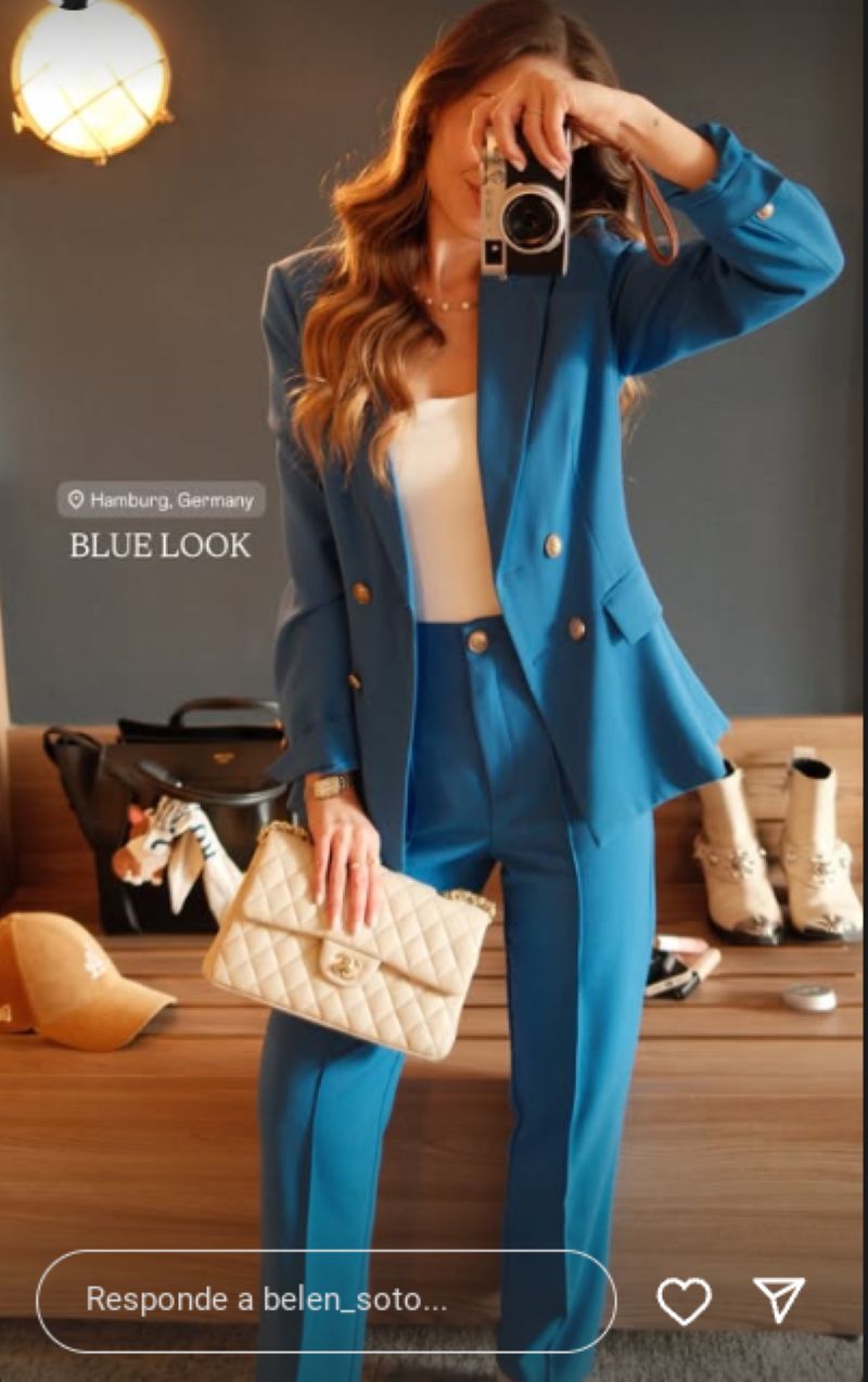 Para su primer día de compromisos en Alemania, Belén Soto eligió un look business casual en azul, el color que marcó su encuentro con otras influencers nacionales, invitadas por Nivea, la reconocida casa de productos para el cuidado personal.