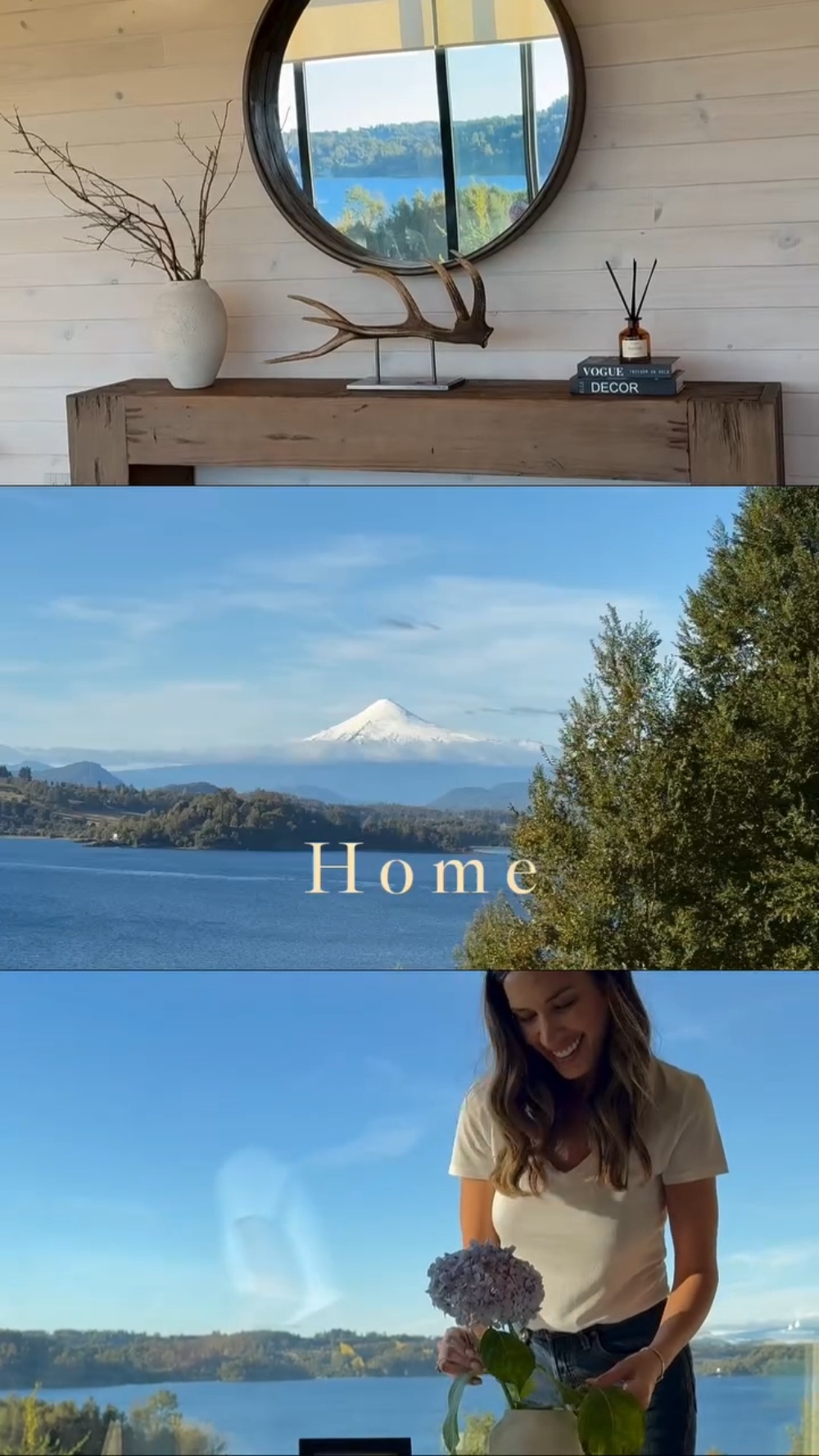 En su cuenta de Instagram, Borghi publicó un video en el que se aprecian los ventanales de su casa, donde un volcán se asoma al fondo para robarse el protagonismo, al igual que el radiante lago que tienen al frente.
