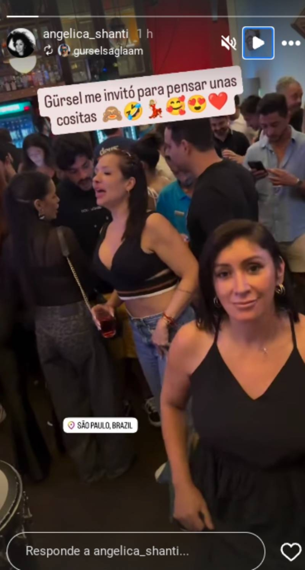 Posteriormente, la influencer compartió a través de sus historias un video desde un bar en la ciudad brasileña de Sao Paulo, donde se deja ver bailando samba.