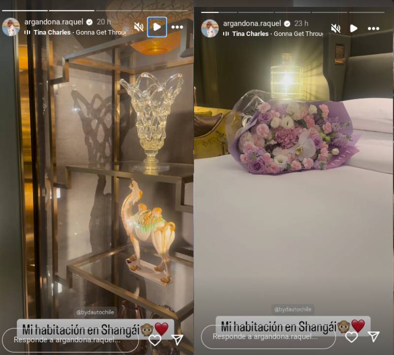 Raquel Argandoña está cumpliendo uno de sus grandes sueños: viajar a China, y lo hace rodeada de lujos y atenciones desde su llegada al país asiático. La presentadora fue recibida con un cartel de bienvenida y flores en su lujosa habitación, que mostró en un room tour a través de sus historias de Instagram.