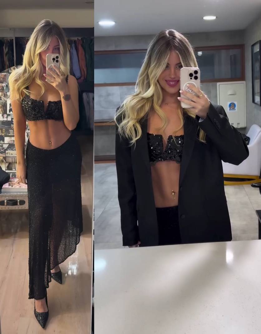 El estilo "glam" de Coté López con top de lentejuelas y falda en transparencia para una noche especial