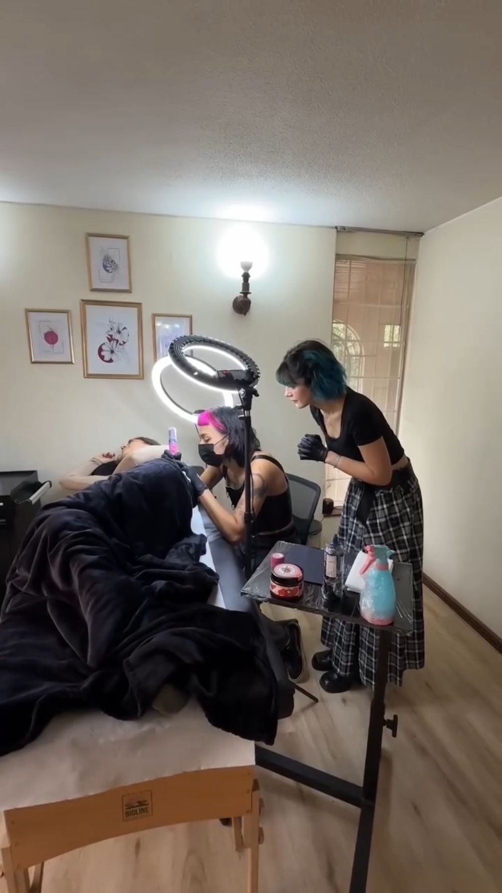 Durante varias horas la creadora de contenido aprendió los aspectos básicos del tatuaje, desde la esterilización de los instrumentos hasta el diseño, y narró la experiencia como aprendiz y con su primera clienta.
