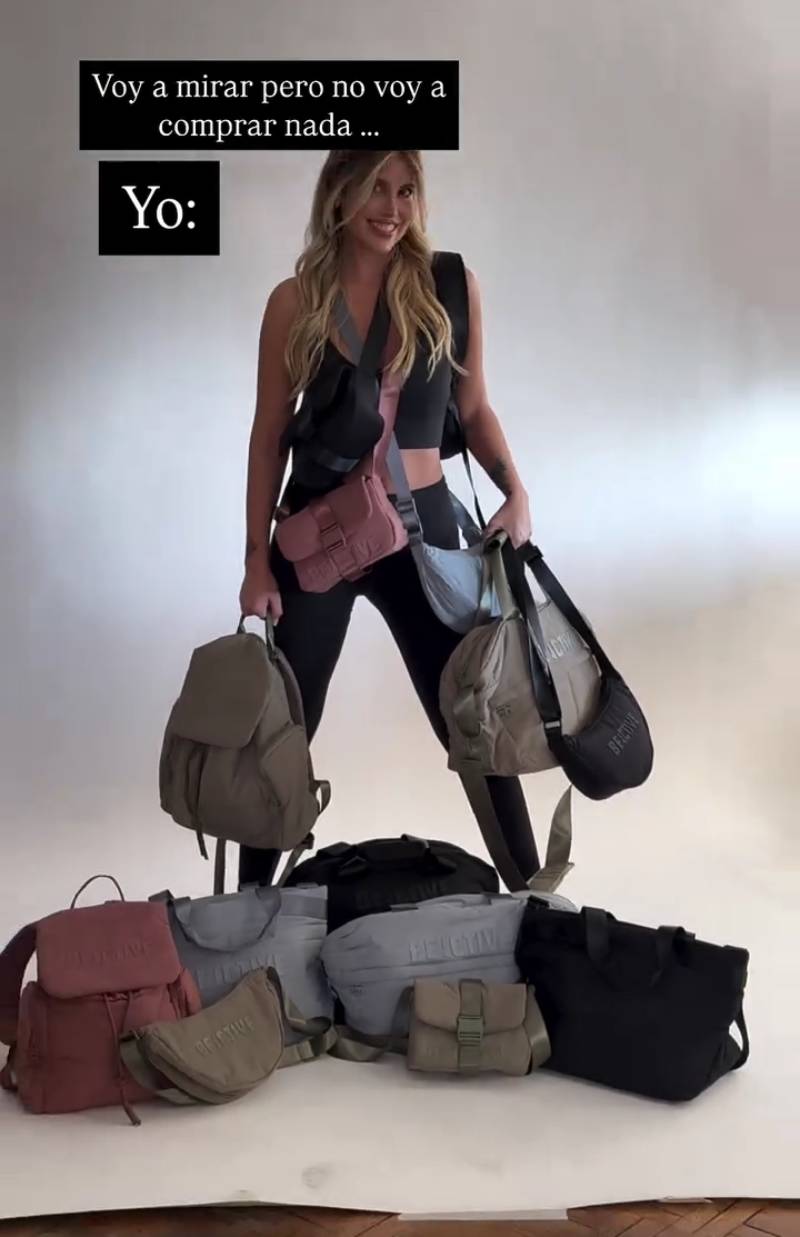 Haciendo gala de su buen sentido del humor, Coté compartió una imagen de ella cargando los bolsos que forman parte de su línea de accesorios deportivos, simulando que los compro todos. El mensaje dice: “Voy a mirar, pero no voy a comprar nada”.