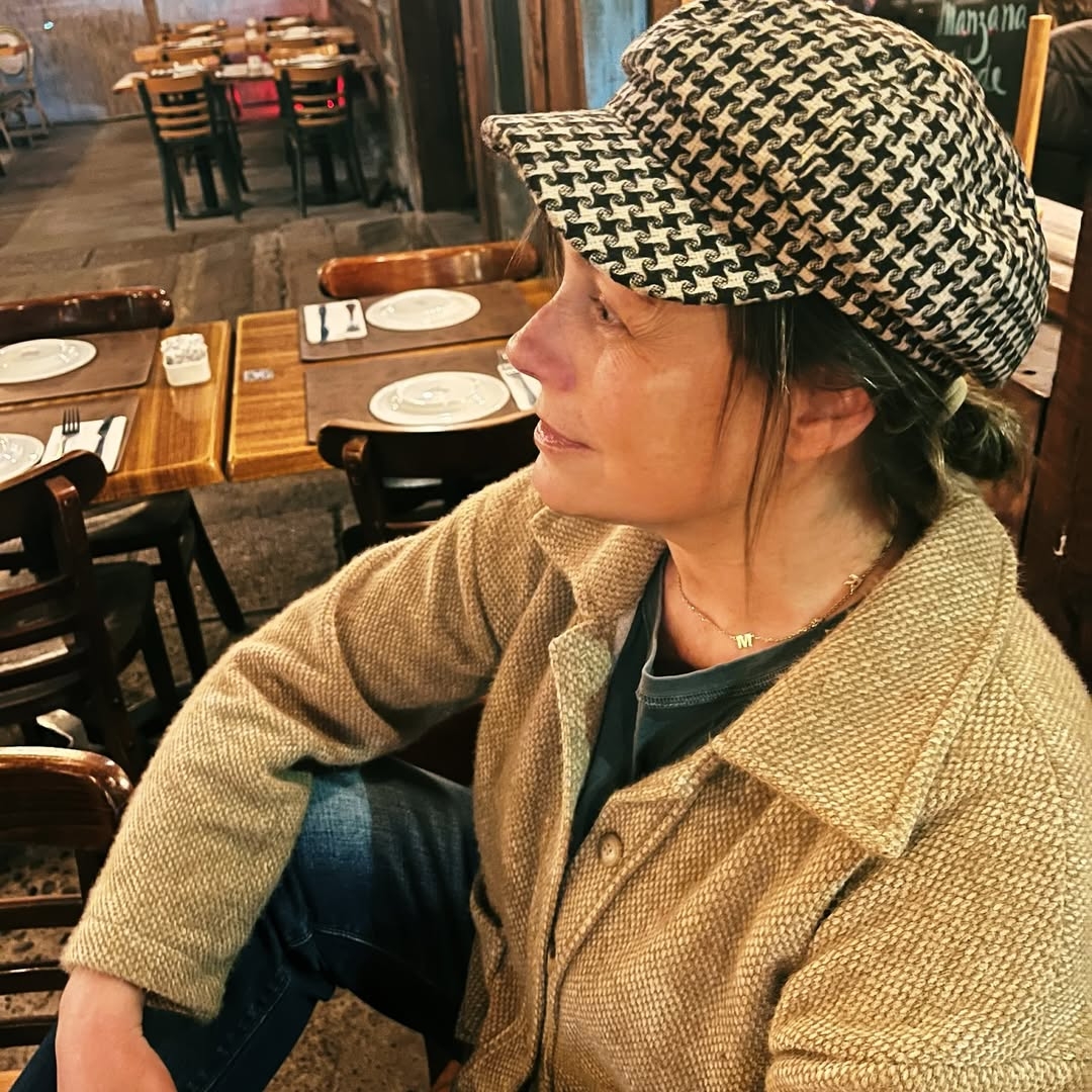 La también actriz nacional se vio con un atuendo que la hizo ver ruda, luciendo una gruesa chaqueta de lana marrón con solapas grandes, bolsillos inferiores y botones al frente. En su interior optó por una polera negra desgastada, de cuello redondo.