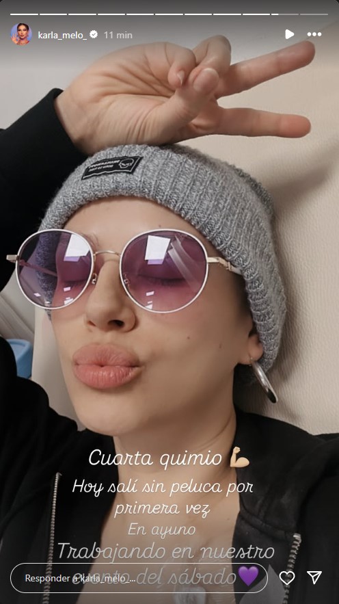 Por medio de su cuenta de Instagram, Karla Melo les contó a sus seguidores que se estaba realizando la cuarta quimioterapia, en el marco del cáncer de mama que sufre hace unos meses.