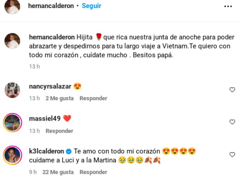 En medio de la polémica familiar que lo rodea, Hernán Calderón Salinas reapareció públicamente para dedicar un tierno mensaje a su hija Kel Calderón, quien pronto partirá en un viaje con destino a Vietnam.