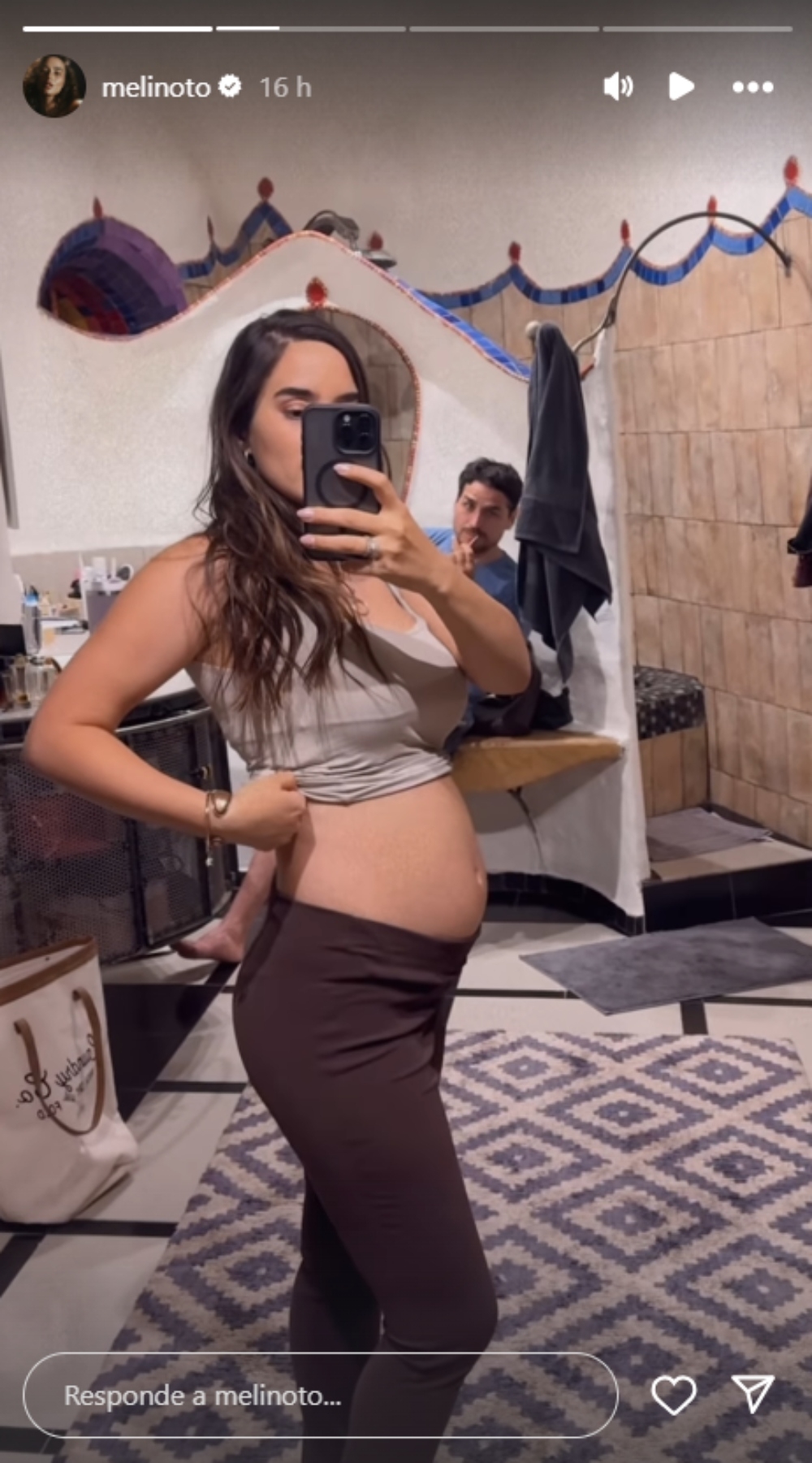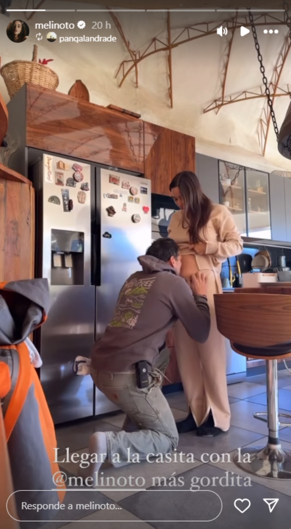 En sus historias de Instagram, el chico reality publicó un registro donde aparece llegando a casa para abrazar a su amada y luego darle un beso a su pancita. “Llegar a la casita con la Meli más gordita”, escribió Pangal en el video.