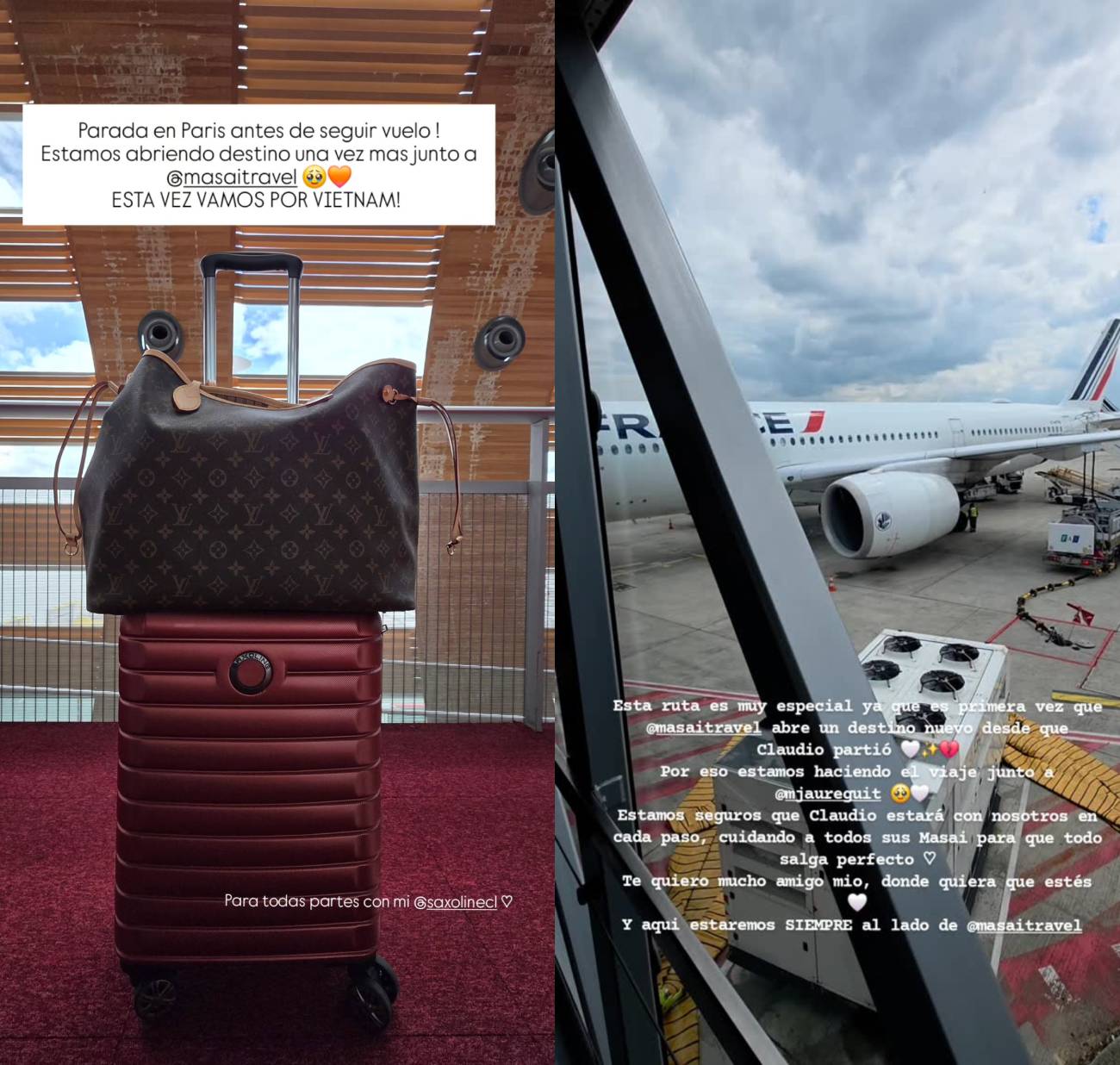 La abogada partió junto a Jáuregui en un viaje organizado por la agencia de Claudio Iturra. En sus historias, dio a conocer que se trató de un vuelo con una escala en París, Francia.