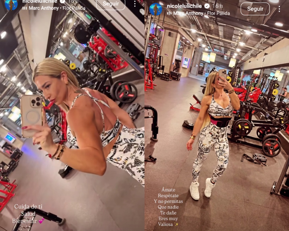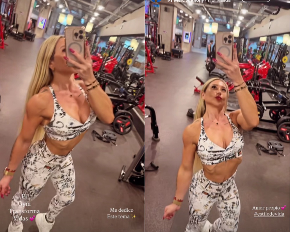 "Me dedico este tema", escribió la empresaria en sus historias de Instagram al compartir varias imágenes, musicalizadas con la canción "Flor Pálida" del cantante puertorriqueño. “El gym transforma vidas”, apuntó.