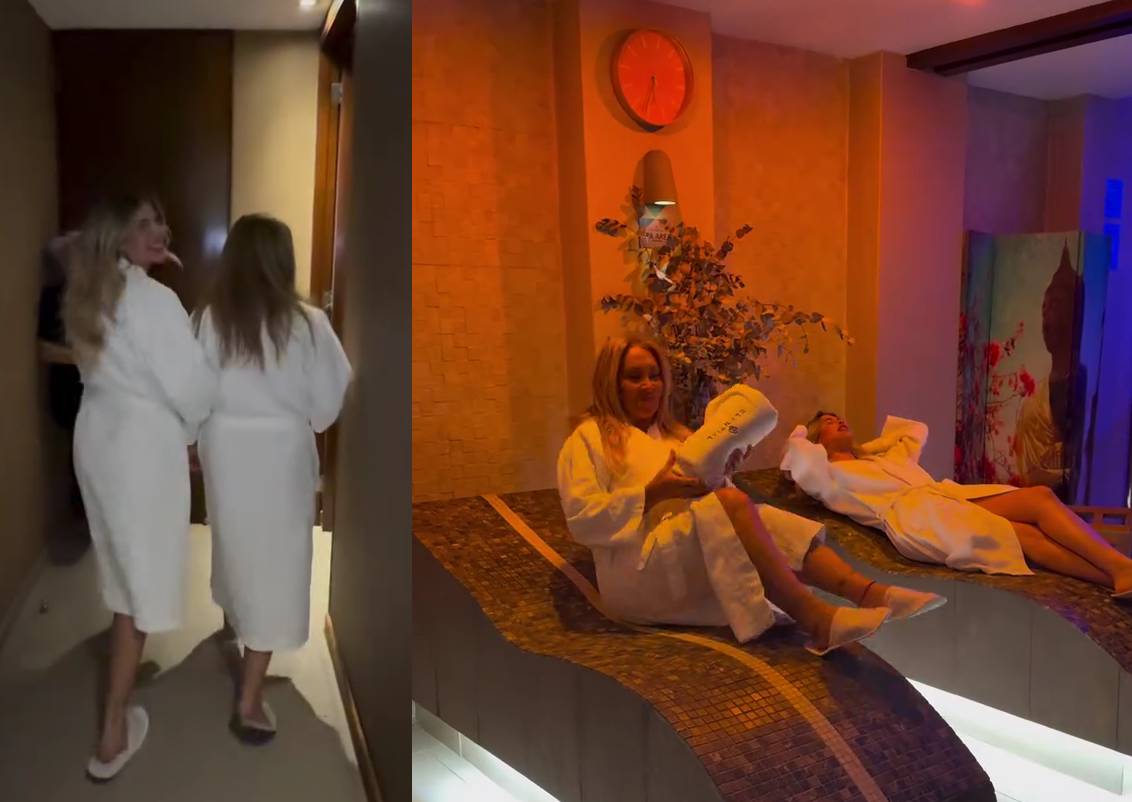 En su cuenta de Instagram, la influencer publicó un video donde muestra la llegada al spa y cuando están a punto de recibir los masajes, así como la entrada al sauna.