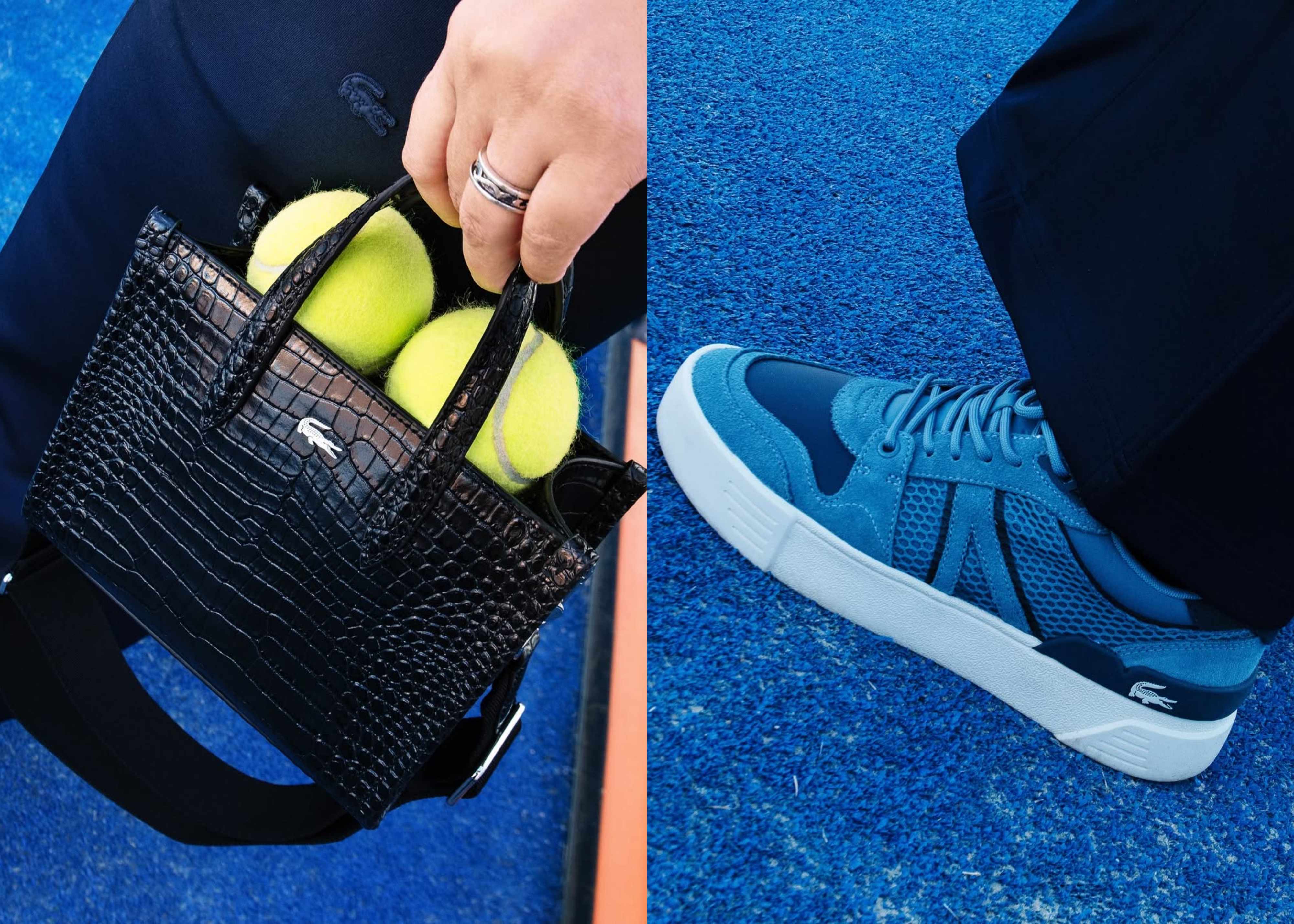 Los elementos que elevaron su look fueron una chaqueta deportiva, corta y de un negro satinado, además de un bolso Lacoste de textura cocodrilo y zapatillas en color azul.