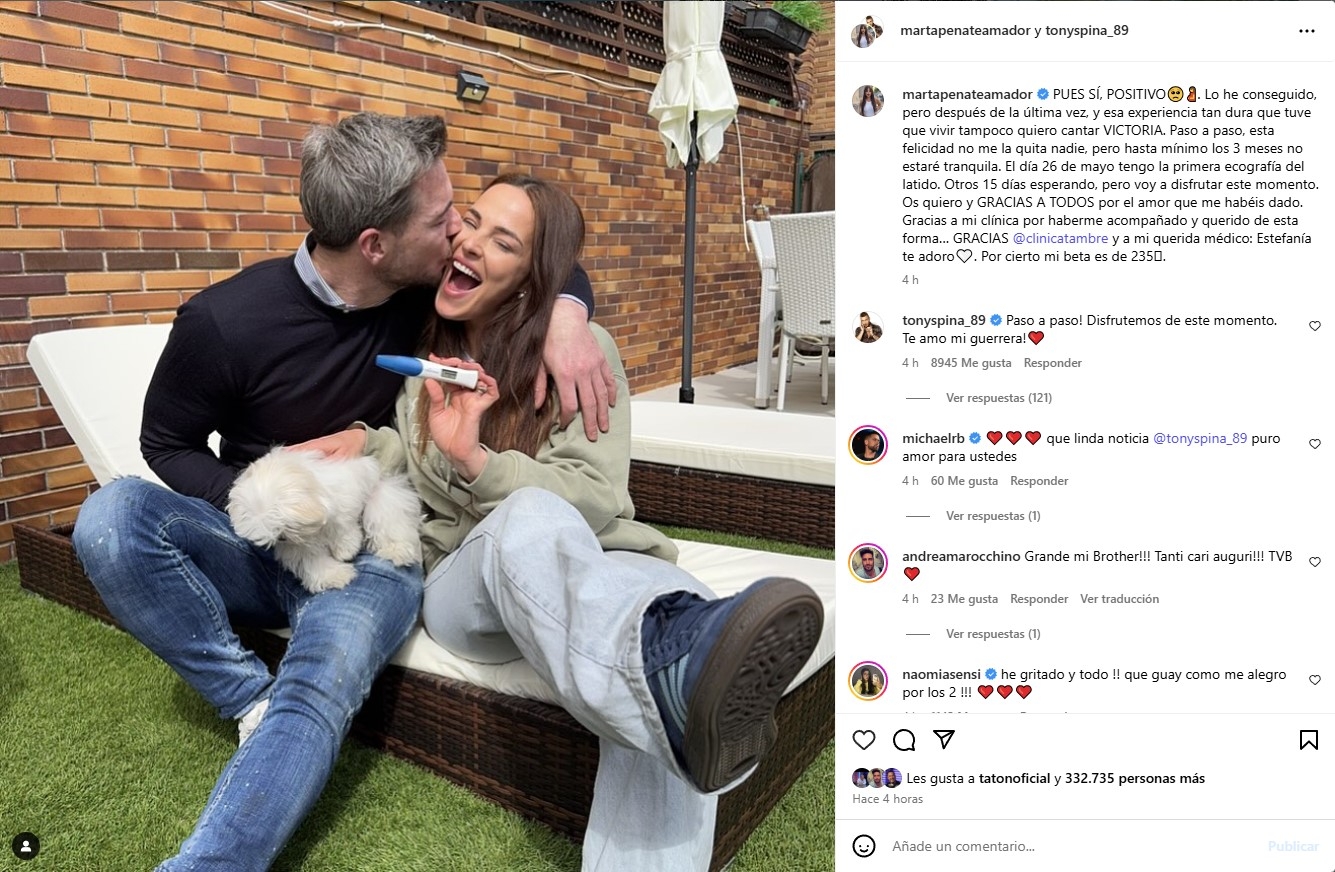 Fue Marta Peñate, pareja de Tony Spina, quien entregó la noticia en su cuenta de Instagram, recordando lo mucho que les ha costado el proceso de quedar embarazada.