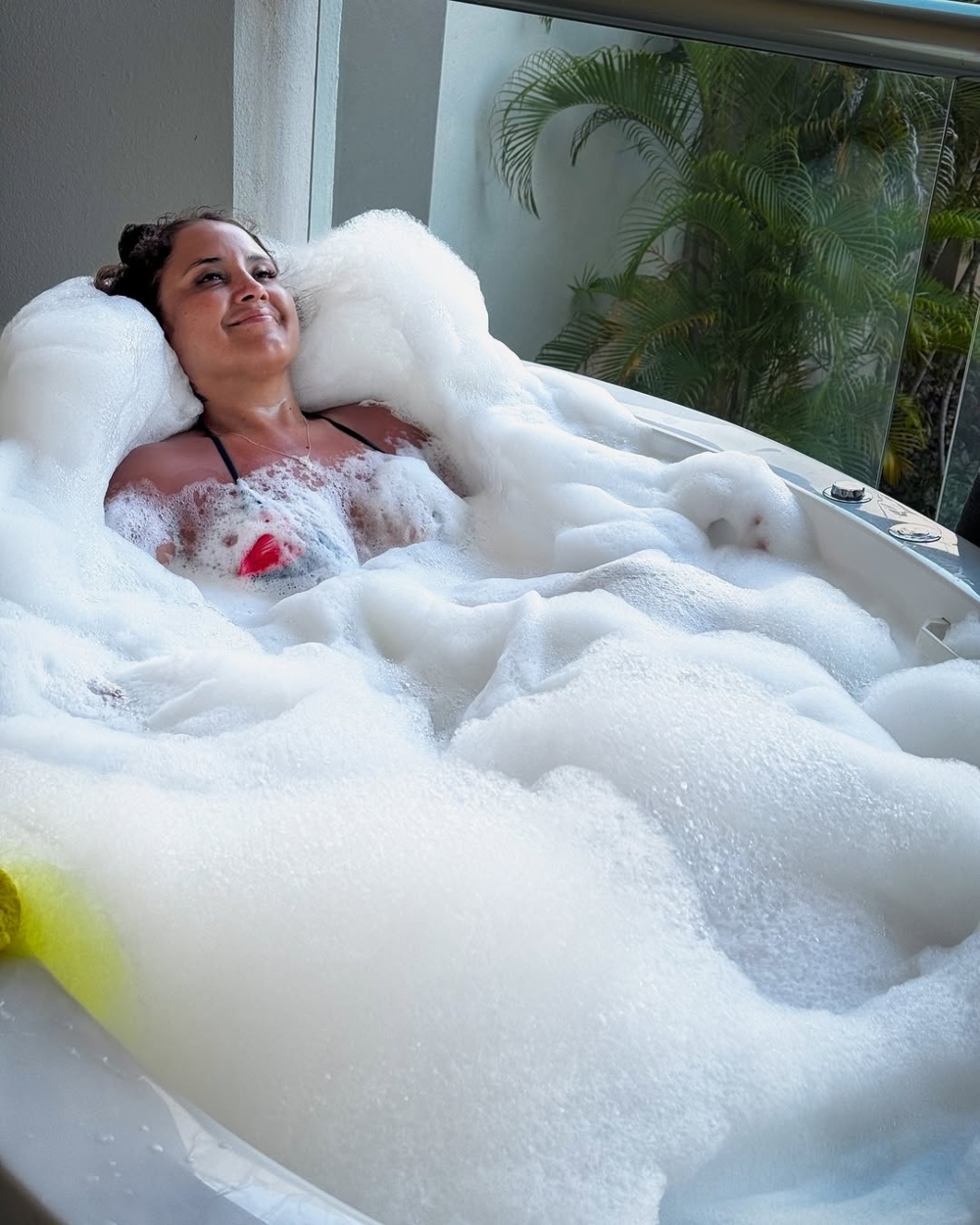 Las vacaciones de Pamela Leiva por el trópico continúan y ahora se muestra en una habitación en Punta Cana, donde disfruta de un relajante baño de burbujas.