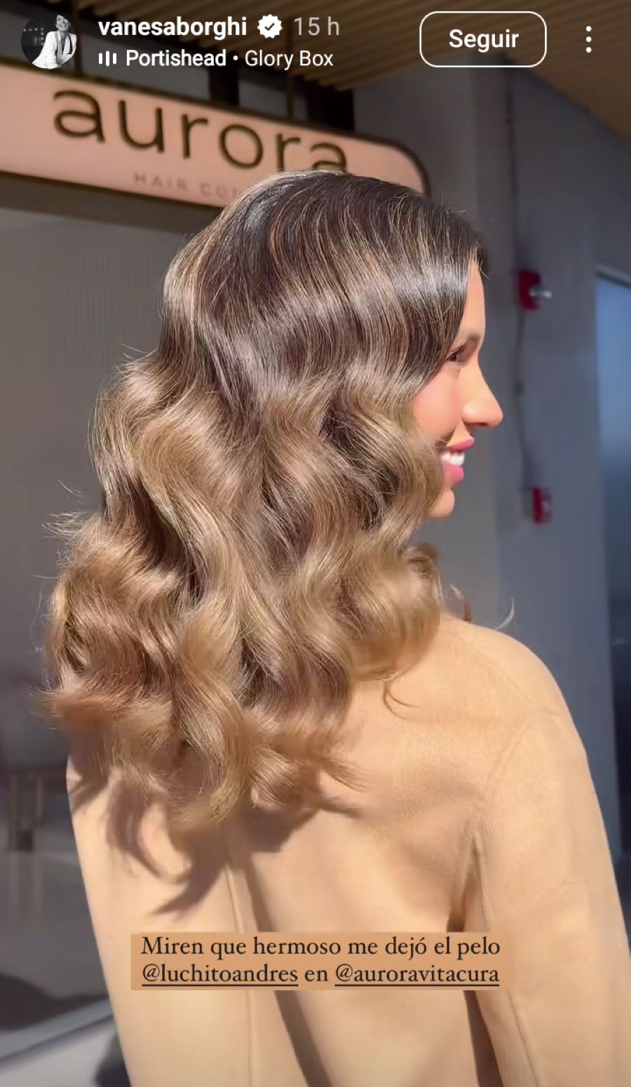 También conocidas como ondas Hollywood, por su acabado prolijo y elegante, este peinado es ideal para elevar un look casual. “Miren que hermoso me dejó el pelo”, escribió Borghi en sus historias de Instagram a la salida de la peluquería.