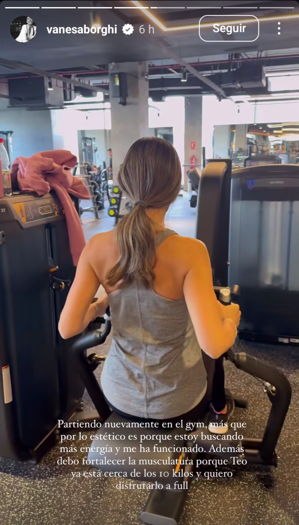Después de varios meses alejada del entrenamiento, Vanesa Borghi regresa al gimnasio por razones relacionadas al bienestar físico y a la familia que forma junto a Carlos Garcés.